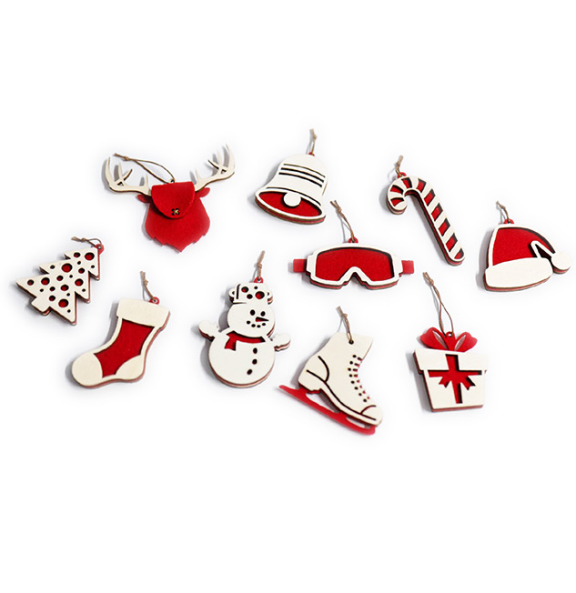 Odkrijte našo osupljivo novo kolekcijo božičnih okraskov Spira, izdelanih iz lasersko rezanega vezanega lesa z drzno rdečo plastjo filca na sredini. Privlačni okraski, ki polepšajo vsak prostor – od prijetnih domov do elegantnih trgovin.